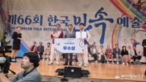 고창에 위치한 강호항공고등학교가 지난 9월 28일 충북 영동에서 치러진 제66회 한국민속예술제 청소년부에 전북대표로 출전해 우수상을 수상했다. 강호항고는 도내 유일의 청소년 농악단으로 농악전승학교로 지정되어 있다. 농악단은 꽹과리 4명, 징 2명, 장구 6명, 북 4명, 소고8명, 잡색 12명, 태평소 1명, 기수 4명 등 총 41명의 학생들로 구성·운영되고 있다. 강호항공고 농악단은 전통문화에 대한 관심과 지역문화 발전을 모토로 구성된 동아리로서 매년 대회에 출전중이다. 한국민속예술제는 매년 광역지자체가 순회로 운용하고 있으며 상반기에 각 지역별 예선을 거쳐 하반기에 본선을 치르게 된다. 이번 수상은 전라右도 농악의 진수를 고창농악 ‘판굿’으로 잘 보여준 한 판이었다. ‘판굿’은 세습무계집단의 예능과 마을농악이 결합된 형태로 전승되고 있는데 저정거리는 몸짓과 장단의 맛, 멋드러진 발놀음이 특징이다. 한편 강호항고는 군에 소요되는 기술특기병을 양성하고 졸업과 동시에 공군 기술전문병으로 입대, 부사관으로 진출하는 사업을 운용중인 특성화고등학교이다.