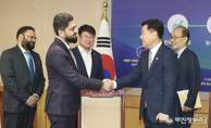 전북특별자치도가 도내 수소기업의 세계 시장 진출을 앞당기기 위해 인도의 대표 에너지기업과 손을 잡았다. 이번 협력은 전북 수소산업이 국제 무대에서 경쟁력을 확보하고, 글로벌 시장으로 도약하는 중요한 전환점이 될 전망이다. 전북자치도는 29일 도내 수소전문기업 ㈜아헤스와 함께 인도의 주요 에너지기업인 GH2 Solar, KPI Green Hydrogen & Ammonia와 업무협약(MOU)을 체결했다고 밝혔다. 협약식에는 김관영 도지사와 ㈜아헤스 이중희 대표, GH2 Solar의 아누라그 자인(Anurag Jain) 대표, KPI Green Hydrogen & Ammonia의 로비 라자세카람(Robbi Rajasekharam) 사장, KP Group의 모이눌(Moinul) 사장&전임이사 등 양측 인사가 참석했다. 이번 협약을 통해 전북자치도와 참여 기업들은 ▲수전해 설비 기술 교류 ▲그린수소 분야 공동사업 추진 ▲인도 현지 시장 확대 등에 상호 협력하기로 뜻을 모았다. 이번 MOU는 전북 수소산업이 단순한 지역 산업을 넘어 글로벌 차원의 협력 네트워크를 구축하는 계기가 될 것으로 기대된다. ㈜아헤스는 알칼라인 수전해 스택 전문기업으로, 지