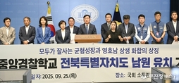 제2중앙경찰학교 남원 유치를 위한 범정치권 연대가 본격화됐다. 전북특별자치도는 25일 국회 소통관 브리핑룸에서 제2중앙경찰학교의 남원 설립을 지지하는 여야 국회의원 공동 기자회견을 개최했다. 이번 기자회견은 경찰청의 제2중앙경찰학교 설립 부지 공모 절차가 막바지에 이른 가운데, 여야 국회의원들이 초당적 협력 의지를 밝히고자 마련됐다. 이 자리에는 이원택 더불어민주당 전북도당위원장과 조배숙 국민의힘 전북도당위원장을 비롯해 전북 지역 및 영호남 국회의원, 전북특별자치도지사, 남원시장 등 약 20명이 참석했다. 특히 민관기 전국경찰직장협의회 위원장과 임원진도 함께해 일선 현장 경찰관들의 남원 입지 선정 지지 입장을 전달했다. 이날 참석자들은 "남원의 제2중앙경찰학교 유치는 단순한 지역 생존의 문제를 넘어 국가균형발전을 위한 중요한 이정표가 될 것"이라고 강조했다. 전북은 그동안 국가균형발전 정책에서 소외돼 왔으며, 14개 시군 중 10개 시군이 인구감소지역으로 지정될 정도로 인구 감소가 심각한 상황이다. 남원시는 인구 8만 명(8월 기준 7만 4,867명) 선까지 무너져 제2중앙경찰학교 유치가 지방 소멸 위험의 위기 돌파 기회로 평가받는다. 제2중앙경찰학교가 남원
