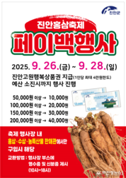 진안군홍삼한방클러스터사업단은 오는 9월 26일부터 28일까지 열리는 「2025 진안홍삼축제」에서 홍삼·수삼·농특산물 소비 촉진과 지역 상권 활성화를 위해 페이백 행사를 운영한다. 이번 페이백 행사는 축제장을 찾은 방문객이 진안홍삼·수삼·농특산물을 구매할 경우, 결제 금액의 일부를 ‘진안고원행복상품권’으로 돌려주는 소비자 환원형 이벤트다. 행사 기간 동안 구매 실적에 따라 (5만원 이상 1만원, 10만원 이상 2만원, 15만원 이상 3만원, 20만원 이상 4만원, 1인당 최대 4만원까지 지급) 차등 지급된다. 단, 축제 행사장 내 홍삼 수삼 농특산물 판매관에서 구입 시에만 해당된다. 신청 방법은 해당 상품 구매 후 행사장 부스에 영수증 및 신분증을 제시하면 된다. 군은 페이백이 지역 상품권으로 지급되기 때문에 지역 내 가맹점에서 자유롭게 사용할 수 있어 소비자 만족도와 지역경제 선순환 효과를 동시에 거둘 것으로 기대하고 있다. 김정배 클러스터사업단장은 “진안홍삼축제는 전국 유일의 홍삼 축제로, 품질 좋은 진안홍삼과 농특산물을 합리적인 가격에 만날 수 있는 기회”라며, “페이백 혜택을 통해 소비자는 실속을 챙기고, 생산자는 판매 활력을 얻어 지역경제에도 힘이 될