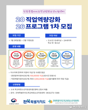 전북특별자치도 학교 밖 청소년 지원센터(센터장 이상염)는 1월 26일부터 2월 13일까지 도내 만 15세 이상 24세 이하 학교 밖 청소년을 대상으로 ‘2026년 직업역량강화 프로그램’ 1차 참여자를 모집한다. 직업역량강화 프로그램은 학교 밖 청소년이 진로를 찾고 스스로 자립할 수 있도록 돕기 위해 마련된 단계별 직업훈련 과정으로, 총 151시간 이상 운영된다. 단순한 직업체험을 넘어 진로상담부터 직업기술훈련, 현장 실무 경험, 취업 연계, 사후관리까지 이어지는 전 과정 지원이 특징이다. 프로그램은 총 5단계로 구성된다. 1단계에서는 진로 탐색과 상담을 진행하고, 2단계에서는 자립 동기 강화를 위한 프로그램을 운영한다. 3단계에서는 직업 분야별 기초기술훈련을 실시하며 참여자에게 훈련참여지원비가 지급된다. 이어 4단계에서는 실제 사업장에서 직장체험을 실시하고 직장체험지원비를 제공한다. 마지막 5단계에서는 고용노동부 국민취업지원제도와 연계해 취업을 지원하고 사후관리를 통해 안정적인 자립을 돕는다. 지난해에는 51명의 학교 밖 청소년이 바리스타, 제과제빵, 미용, 반려동물 관리 등 다양한 직업훈련과 직장체험에 참여했으며, 이 중 36명이 관련 자격증을 취득하거나