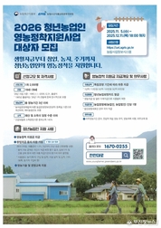 장수군은 농업의 미래를 이끌어갈 유망한 청년농업인을 육성하기 위해 ‘2026년 청년농업인 영농정착지원사업’ 신청을 오는 12월 11일까지 받는다고 밝혔다. 이번 사업은 청년층의 농촌 정착을 돕고 지속 가능한 농업 인재를 양성하기 위한 것으로, 농업경영 초기 단계의 청년들에게 실질적인 영농 자금과 기반을 지원하는 사업이다. 지원 자격은 신청 연도 기준 18세에서 39세(1985~2008년생)의 청년 중, 농업경영체 경영주 등록 기준 영농경력이 3년 이하인 자 또는 예비농업인이다. 선정된 청년농업인에게는 독립경영 연차에 따라 1년 차 110만 원, 2년 차 100만 원, 3년 차 90만 원의 영농정착지원금이 월별로 지급된다. 지원금은 농가 경영비, 영농활동비, 일반 생활비 등으로 자유롭게 활용할 수 있어 초기 정착 부담을 줄일 수 있다. 또한, ‘후계농업경영인 육성자금’ 정책자금을 통해 세대당 최대 5억 원 한도 내에서 연 1.5% 고정금리, 5년 거치 20년 원금 균등분할 상환 조건으로 자금을 지원받을 수 있다. 해당 자금은 농지 구입, 시설 설치, 농업용 화물자동차 구입 등 영농 기반 마련에 활용할 수 있어 안정적인 농촌 정착에 큰 도움이 될 전망이다. 사업