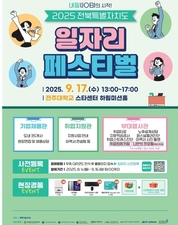 전북특별자치도가 도내 구직자와 기업을 직접 연결하는 대규모 채용·취업 지원의 장을 연다. 도는 오는 9월 17일 전주대학교 스타센터 하림미션홀에서 「2025 전북특별자치도 일자리페스티벌」을 개최한다고 밝혔다. 이번 행사는 구직자에게는 양질의 일자리를, 기업에는 우수 인재를 발굴할 기회를 제공하는 뜻깊은 자리로 마련됐다. 올해 페스티벌에는 37개 기업이 참여해 250명 이상의 채용을 진행할 예정이며, 전북경진원과 노동부 전주지청 등 27개 유관기관이 함께 참여해 구직자를 지원한다. 현장에는 약 1,000명의 구직자가 방문할 것으로 예상돼, 실질적인 채용 연계 효과가 기대된다. 행사장은 기업채용관, 취업지원관, 전시체험관 등으로 구성돼 있다. 기업채용관에서는 농생명바이오, 탄소융복합소재, 이차전지·수소 등 전북의 주력산업과 미래 신산업 분야 기업들이 채용 상담과 현장 면접을 진행한다. 금융, 사회복지, 관광, 서비스 분야의 생활밀착형 기업과 일자리 우수기업도 참여해 구직자들에게 다양한 기회를 제공한다. 또한 유관기관 부스를 통해 기업지원제도와 채용 연계 사업도 안내된다. 취업지원관에서는 청년·중장년 등 계층별 구직자를 대상으로 한 맞춤형 컨설팅과 대학 연계 직업