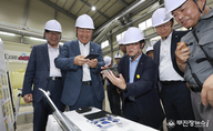 김성환 환경부장관이 5일 전북특별자치도를 방문한 가운데 태양광 폐패널 재활용업체인 전주 석청코리아를 찾아 김관영 도지사와 재활용시설을 둘러보고 있다.