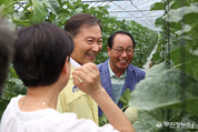 전춘성 진안군수는 지난 2일 성수면 멜론 재배 현장을 방문해 생육상태를 확인하고 농가의 현안과 애로사항을 청취하는 시간을 가졌다. 백운·성수면은 농가 소득 증대를 위해 멜론을 전략적 대체 작목으로 선택했으며 공선출하회 회원 27농가 중심으로 약 7ha 면적에 재배하고 있다. 진안고원 멜론은 큰 일교차, 고랭지 기후 등 최적의 조건에서 생산해 육질이 단단하고 당도가 높아 소바자들로부터 큰 인기를 얻고 있어 주소득 작물로 농가 소득 증대에 크게 기여하고 있다. 진안군은 2024~2025까지 2년간 멜론 실증단지 조성사업으로 멜론 유인틀, 종묘 등에 약 3억원을 투입해 고품질 멜론 생산을 위한 시범 사업을 펼쳐오고 있다. 또한 멜론 품목에 대한 농업인들의 관심이 높아짐에 따라 올해 처음으로 새해농업인 실용교육과 품목별 교육을 실시했다. 이는 멜론 재배농가 역량을 강화해 멜론 생산 매출액 7억을 목표로 농가 소득 증대를 위해 노력에 일조했다. 전춘성 진안군수는 “진안군 특화작목인 멜론을 육성하기 위해 농업인과 현장 소통을 강화하고, 지원 정책을 아끼지 않을 것”이라며 “브랜드 가치를 높이고, 농가 소득 향상시키는 ‘돈버는 농업’을 실현하겠다”고 말했다.