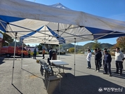 진안군 용담면은 지난 27일 면사무소 광장에서 진안소방서 진안119 안전센터와 함께 2025 공공기관 합동소방훈련을 실시했다. 이날 훈련에는 용담면사무소, 보건지소, 용담면대, 용담농협 직원 및 진안119 안전센터 소방관 등 20여명이 참여했다. 이번 합동소방훈련은 화재 발생을 가정해 유사시 직원의 신속한 재난 대처 능력을 함양하는 데 초첨을 맞췄다. 화재 발생 전파 및 대피 유도와 소화기를 활용한 초기 화재 진압, 인명 구조, 중요 물품 반출, 소방차 출동 시 유도 및 지원, 응급복구 훈련 순으로 진행됐다. 노기환 용담면장은 “이번 훈련으로 직원들이 화재에 대한 경각심을 갖고 자체적으로 소방 및 응급 대처 능력을 키우는 데 큰 도움이 되었다”고 전하며 “앞으로도 정기적인 소방훈련을 실시하여 안전 의식을 고취시키고, 지역 내 안전망을 강화하는데 최선을 다하겠다”고 말했다.
