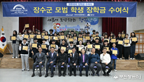 장수군은 24일 군청 군민회관에서 ‘2025년 귀뚜라미문화재단 장수군 모범학생 장학금 수여식’을 개최했다고 밝혔다. 이번 행사는 귀뚜라미그룹과 장수군이 함께 지역의 우수한 학생들을 격려하고 미래 인재로 성장할 수 있도록 지원하기 위해 마련된 자리로, 관내 중·고등학생 50명에게 총 5천만 원의 장학금과 장학증서가 전달됐다. 귀뚜라미문화재단은 기업의 사회적 책임을 실천하기 위해 설립된 비영리 공익재단으로, 교육 발전과 지역 인재 육성을 위한 장학사업을 꾸준히 이어오고 있다. 이번 장학금 지원 또한 학생들의 학업 의지를 높이고, 지역 교육 발전에 활력을 불어넣는 계기가 될 것으로 기대된다. 최진민 귀뚜라미그룹 회장은 “장수지역 학생들이 이번 장학금을 통해 학업에 전념하고, 지역과 국가를 이끄는 인재로 성장하길 바란다”며 “앞으로도 지역사회와 함께 성장하는 나눔 활동을 지속해 나가겠다”고 전했다. 최훈식 장수군수는 “이번 장학금은 학생들이 자신의 꿈을 마음껏 펼칠 수 있는 든든한 발판이 될 것”이라며 “아낌없는 지원을 해주신 최진민 회장님과 재단 관계자 여러분께 깊은 감사를 드린다”고 말했다. 이어 “장수군은 앞으로도 교육복지 확대와 미래 인재 육성을 위해 적극적
