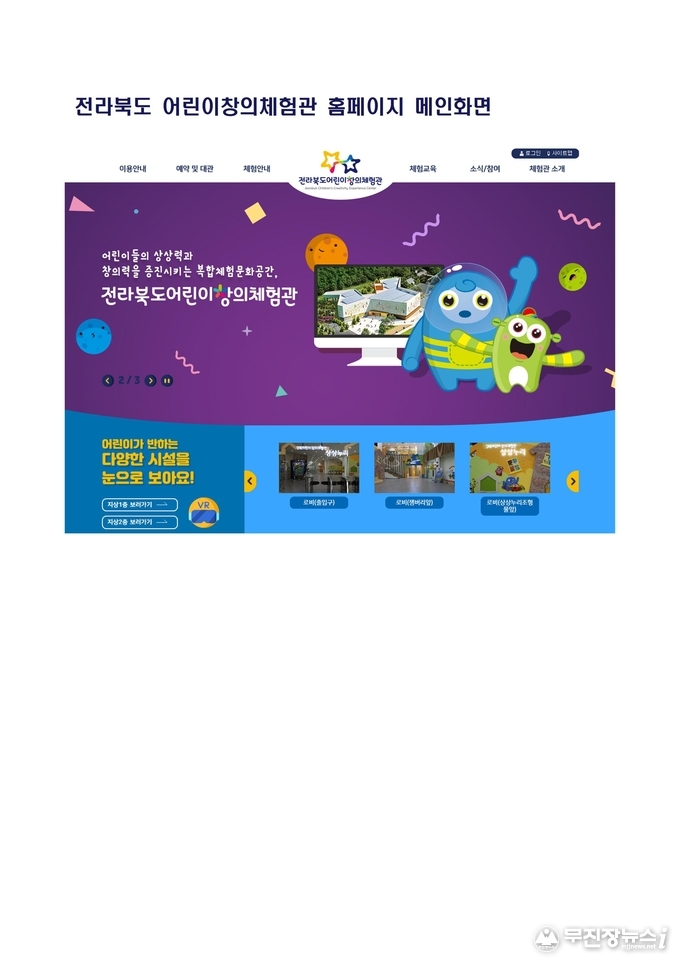전라북도 어린이창의체험관은 10월 21일 개관을 앞두고 창의체험관 종합안내와 이용자 예매 서비스 제공을 위하여 전라북도 어린이창의체험관 홈페이지(http://www.jbchild.kr)를 10월 14일부터 오픈한다고 밝혔다.