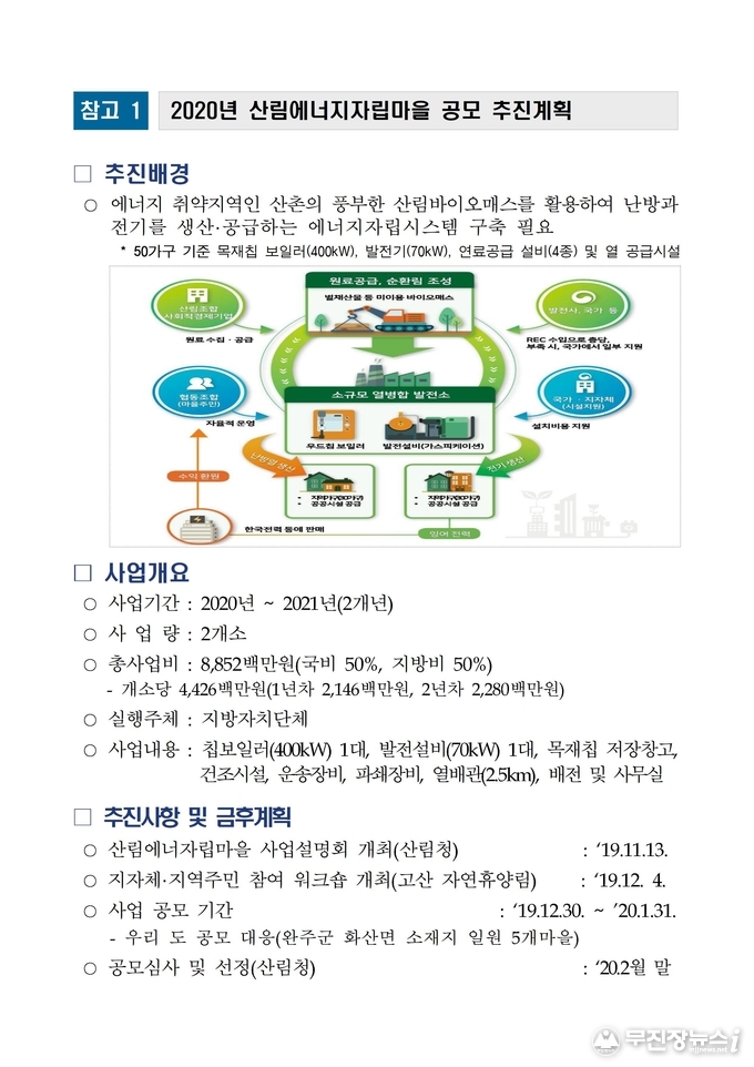 뉴스종합◈ 산림청, 산림에너지자립마을 조성사업 ‘20년 전국 2개소 조성