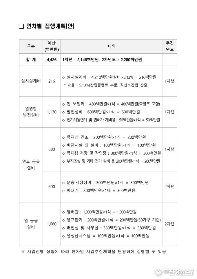 - 총사업비 : 8,852백만원(국비 50%, 지방비 50%), 개소당 4,426백만원