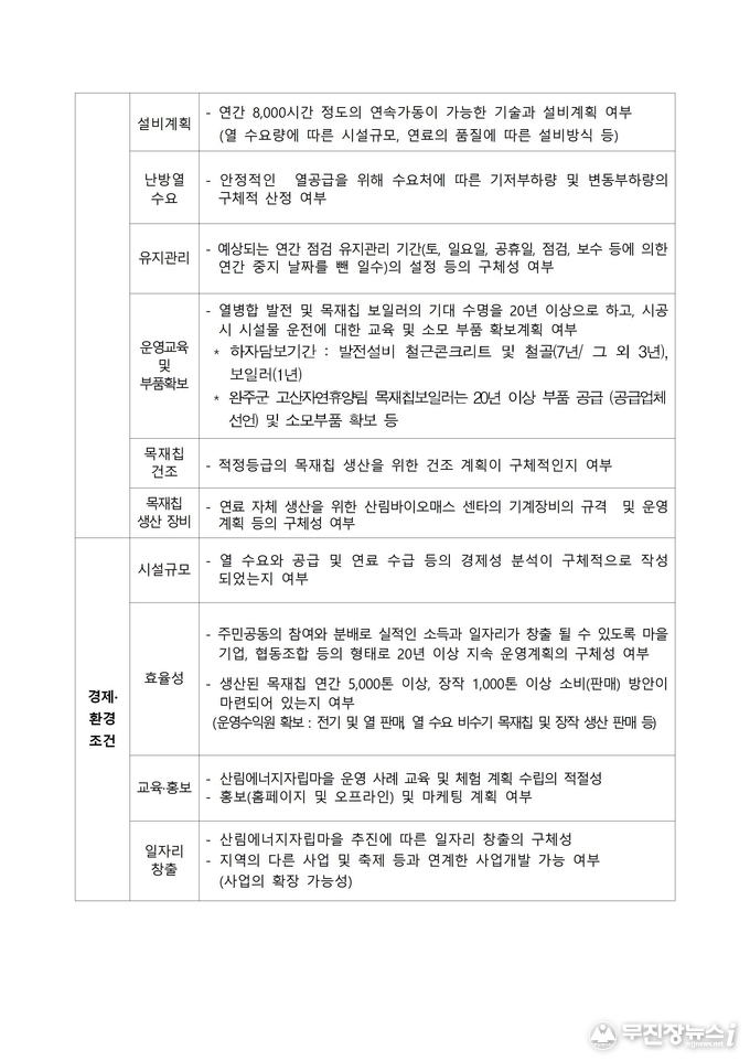 전북 지역의 공모 신청 예정지역인 완주군은 전국에서 유일하게 성공적으로 운영하고 있는 고산자연휴양림 목재칩보일러 열공급시설의 숙련된 자체 기술을 보유하고 있으며 풍부한 산림자원으로 최적지로 대두되고 있다.