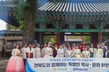 전북특별자치도는 17일 전북농협과 함께 외국인 계절근로자 40여 명을 초청해‘전주·완주 역사문화체험 행사’를 열었다. 이번 행사는 농번기 인력 부족 해소에 힘쓴 근로자들에게 감사의 뜻을 전하고, 전북의 역사와 문화를 체험할 수 있는 기회를 제공하기 위해 마련됐다. 행사에는 외국인 근로자 외에도 도와 시군 관계자 등 60여 명이 함께했다. 기념행사는 완주 우석대학교 W-SKY23에서 진행됐다. 김종훈 전북특별자치도 경제부지사와 이창완 전북농협 부본부장이 참석해 근로자들을 격려하며 감사의 마음을 전했다. 참석자들은 기념촬영과 함께 이름이 한글로 새겨진 태극선 부채 세트를 선물로 받아 큰 환호와 감동의 박수를 보냈다. 이어 참가자들은 △삼례문화예술촌 △전주한지박물관 △전주한옥마을 등 전북의 대표 명소를 둘러보며 한국 전통문화의 멋과 한류의 감성을 체험했다. 특히 주요명소마다 외국인 계절근로자들의 전북 역사와 문화에 대한 이해를 돕기 위하여 해설사 및 통역사를 배치하는 등의 세심한 배려를 통해 문화 체험의 질을 한층 높였다. 김종훈 경제부지사는 “외국인 계절근로자 여러분의 헌신이 전북 농업의 성장과 안정에 큰 힘이 되었다”며, “오늘의 경험이 고국에 돌아가서도 전북
