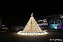 무주군의 성탄 조형물 점등 행사가 지난 2일 군청 앞 분수대에서 개최됐다. 이번 점등 행사는 무주군 기독교연합회가 주최했으며, 황인홍 무주군수와 오광석 무주군의회 의장을 비롯한 군민 등 2백여 명이 함께해 의미를 더했다. 참석자들은 송서철 무주군 기독교연합회장(적상교회 목사)이 전하는 성탄 메시지를 공유하며 트리 점등에 동참했다. 이 자리에서 황인홍 무주군수는 “군청 앞 성탄 트리는 단순한 장식을 넘어 모두에게 전하는 사랑과 평화의 메시지”라며 “바라보는 것만으로도 지역에는 아름다움을, 군민과 무주를 찾는 여러분의 마음에는 따뜻함을 선사해 주기를 바란다”라고 전했다. 한편, 무주군청 앞 대형 분수대에 설치된 트리의 높이는 9m(둘레 24m)규모로, 무주읍 야간 경관과 어우러지는 조형물을 통해 겨울철 이색 볼거리를 만들고 활기찬 연말연시 분위기를 조성한다는 취지에서 마련됐다. 오색 조명으로 장식한 트리 외에도 ‘선물 보따리를 메고 군청 청사 등 건물을 오르는 산타’, 다양한 모양의 빛 조형물들이 설치돼 보는 즐거움과 감동을 더하고 있다. 이날 점등된 트리는 1월 18일까지 48일간 무주군 전역을 밝힐 예정이다. 주민들은 “올해도 읍내를 환하게 밝히는 트리를 보