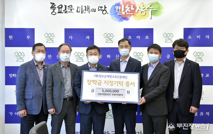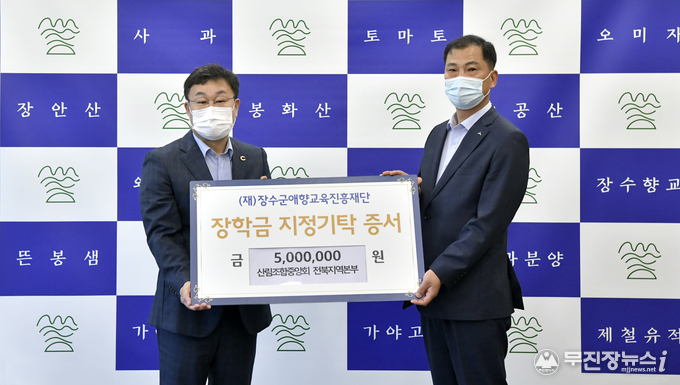 산림조합중앙회 전북지역본부(대표:홍성조)는 06일 (재)장수군애향교육진흥재단에 500만원을 기탁했다.