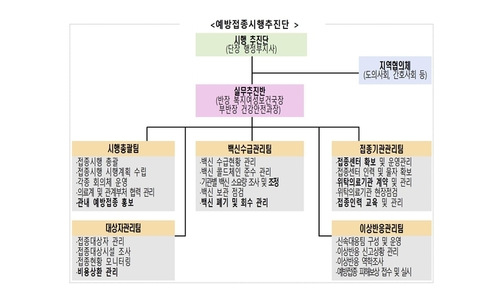 코로나19 예방접종을 위한 계획수립 및 추진단을 구성하고 접종센터 및 위탁의료기관을 지정할 계획이며, 안전하고 신속한 접종이 이루어질 수 있도록 사전준비에 총력을 기울인다.
