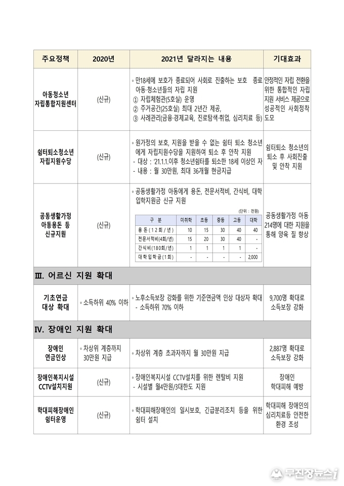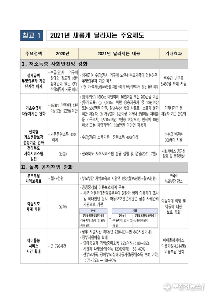 맞춤형 기초생활보장과 긴급복지 지원 확대로 위기가정 보호를 강화한다.