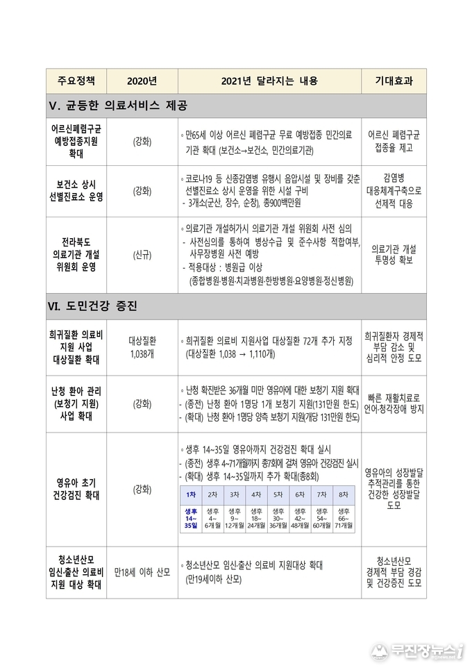 (영유아 건강검진) 생후 4~71개월까지 시행하던 영유아 건강검진을 생후 14~35일까지 확대(7회→8회)