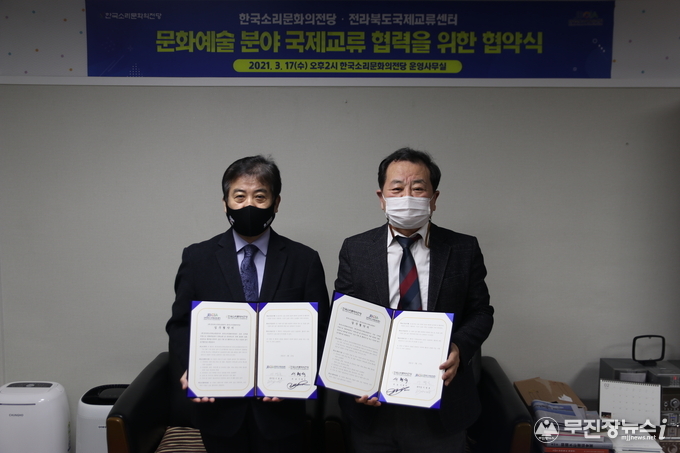 전라북도국제교류센터는 17일 한국소리문화의전당과 문화예술분야의 국제교류 활성화를 위한 업무협약을 체결했다고 밝혔다.