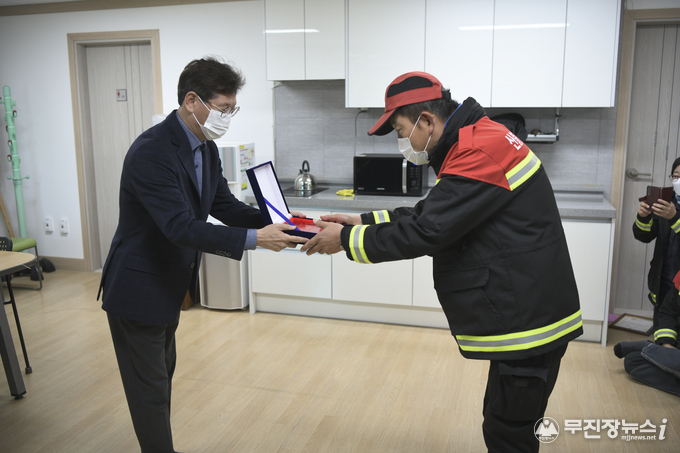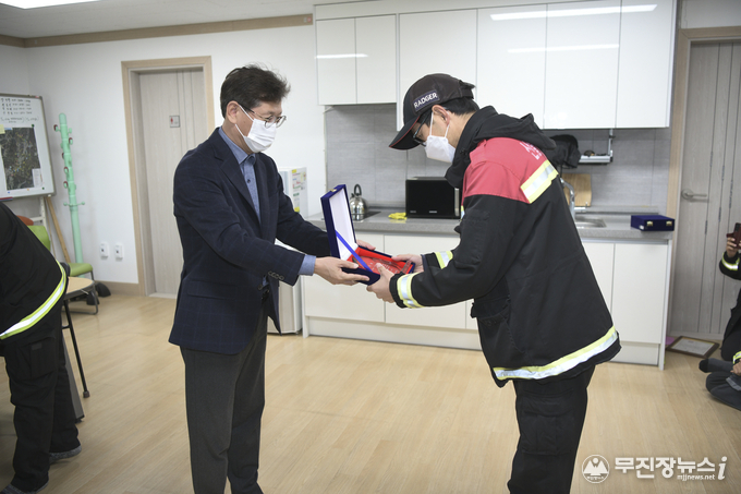 산불진화초소에서 진행된 이날 전수식은 최훈식 군수가 전북도지사 표창패 및 상금을 직접 전수하고 산불진화대원들과 기쁨을 함께 했다.
