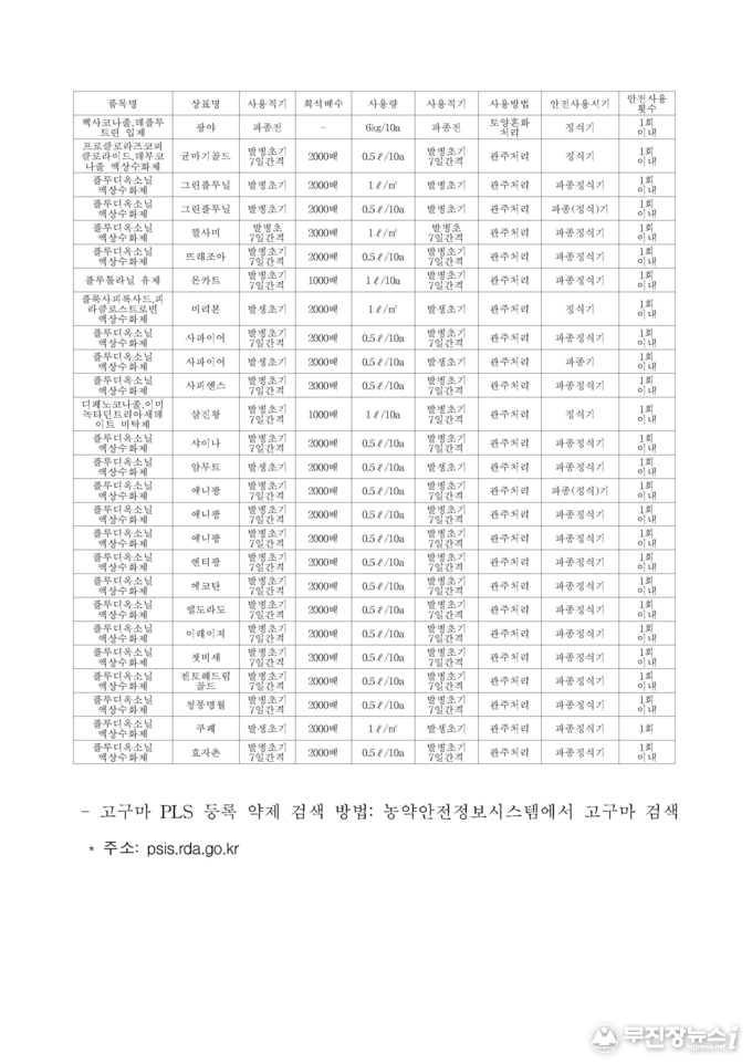 * 농약 허용기준 강화제도(Positive List System): 등록되지 않은 농약은 원칙적으로 사용을 금지하는 제도
