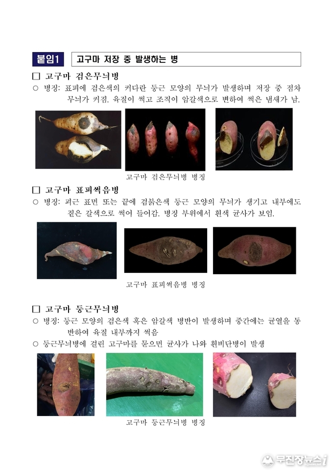 농촌진흥청 바이오에너지작물연구소 송연상 소장은 “최근 고구마 덩이줄기썩음병이 발생해 농가의 새로운 고민거리가 됐다.”라며, “가장 최선의 예방책은 병에 걸리지 않은 건강한 모를 길러내는 것이다. 앞으로 효과적인 방제법과 저항성 품종 개발에 더욱 힘쓰겠다.”라고 전했다.