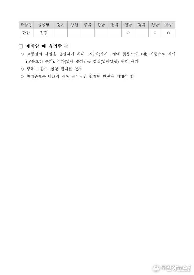 농촌진흥청 국립원예특작과학원 배연구센터 홍성식 센터장은 “단감 소비 감소로 2000년 이후 재배 면적이 지속해서 줄어드는 추세지만, 농촌진흥청에서 개발한 맛 좋은 품종은 오히려 재배 면적이 증가하고 있다.”라며 “새로 보급하는 ‘진홍’도 소비 확대를 통해 단감 산업 활성화와 수출 시장 경쟁력을 강화하는 데 이바지하길 기대한다.”라고 전했다.