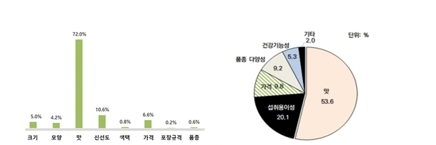 한편, 한국농촌경제연구원 농업관측센터 조사에 따르면, 소비자들은 단감을 구매할 때 가장 중요한 요소로 맛(72%)을 꼽았다.