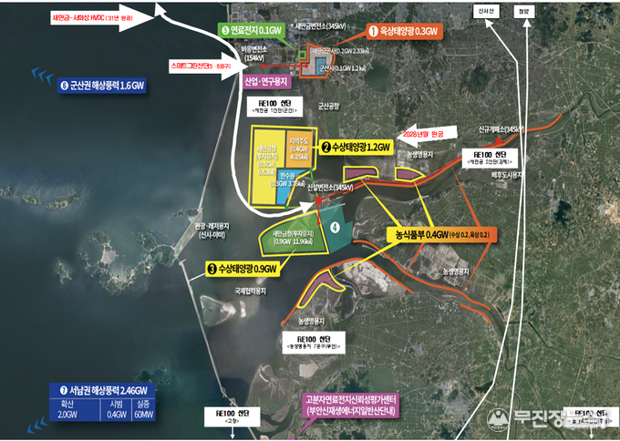 특히 올해부터 가동 예정인 1.2GW급 수상 태양광 발전소는 새만금의 RE100 역량을 보여주는 핵심 인프라가 될 전망이다. 이는 일반 가정 약 50만 가구가 1년간 사용할 수 있는 전력량에 해당한다.