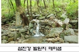 섬진강은 진안군 백운면 옥녀봉 아래 데미샘에서 발원해 전남 광양만까지 223km를 흐르는 강으로, ‘맑은 강’이라는 이름처럼 깨끗한 물줄기로 알려져 있다. 특히, 발원지 데미샘은 2016년 국가산림문화자산으로 지정되며 섬진강의 상징성과 역사적 의미를 대표하는 명소로 평가받고 있다.