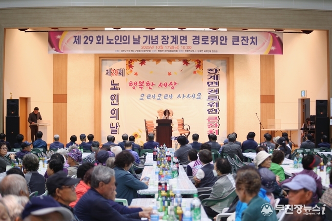 이번 행사는 장계면 주민자치위원회가 주관하고 대한노인회 장계면분회가 주최했으며, ‘행복한 세상 오래오래 사세요’라는 슬로건 아래 지역 어르신들의 헌신과 삶에 감사의 마음을 전하고, 공경과 나눔의 가치를 되새기기 위해 마련됐다.