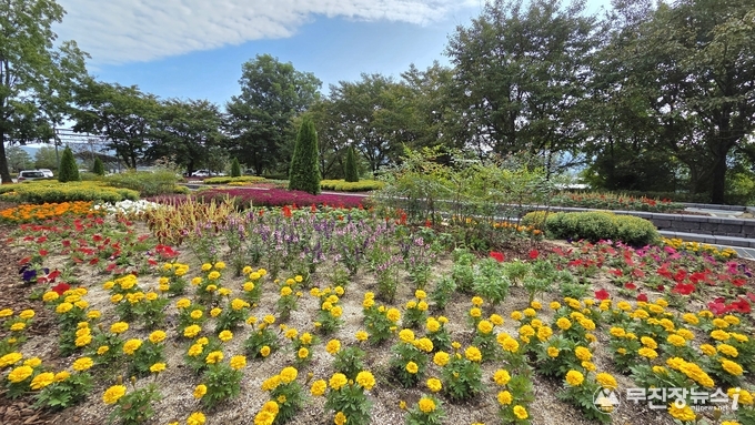 이번에 새롭게 선보인 힐링정원은 국화, 페튜니아, 메리골드, 코레우스 등 6종의 화초류 5,200본과 에메랄드그린, 남천, 홍가시나무 등 나무류 3종 156본을 조화롭게 식재해 다채로운 색감과 계절감을 연출했다.