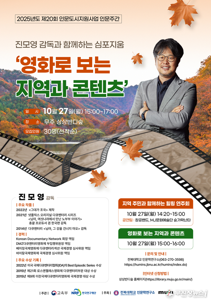 이날 행사는 ‘2025년 인문도시 지원사업’의 일환으로, 전북대학교 인문학연구소와 함께 마련했으며, “다시, 잇다 – 인문학으로 잇는 지역과 공동체”를 주제로 △창공 밴드와 MJ문화예술단 공연, △다큐멘터리 “님아, 그 강을 건너지 마오”의 진모영 감독 초청 강연 등이 진행돼 큰 호응을 얻었다.