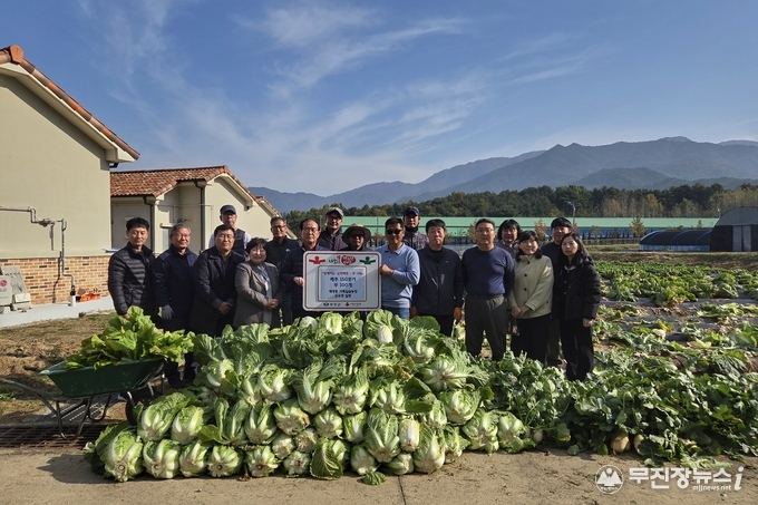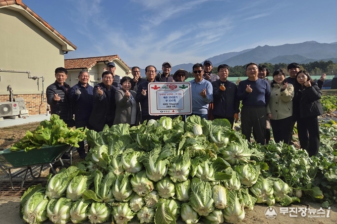 2025년 무주군 체재형 가족실습농장 교육생들이 지난 6일 무주군자원봉사센터에 김장용 배추 150포기와 무 100개를 기부하며 훈훈함을 전했다.
