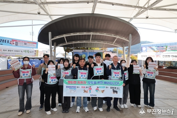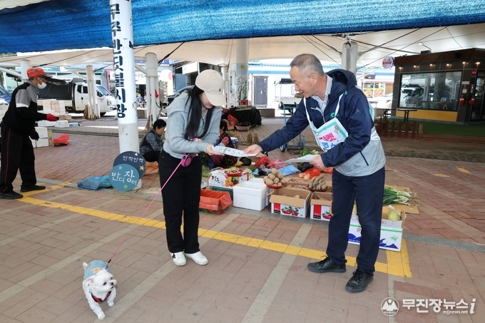 무주군은 지난 6일 무주읍 반딧불시장에서 관련 공무원 등 20여 명이 동참 한 가운데 ‘펫티켓 캠페인’을 진행했다.