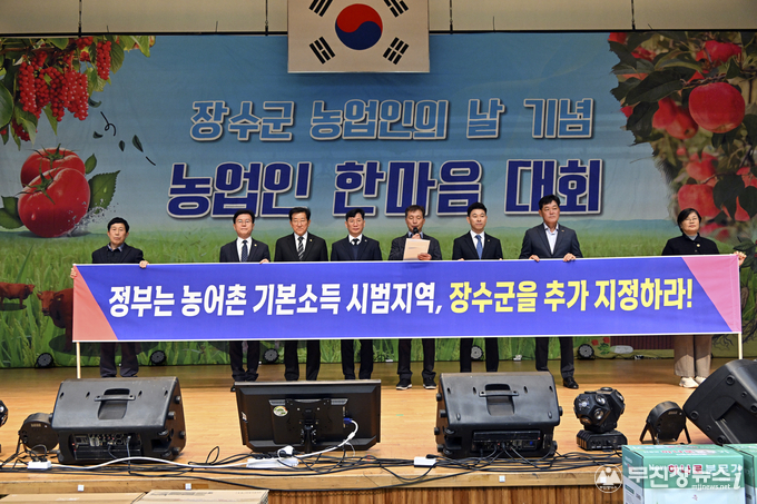 이어서 장수군 농업인단체협의회 정상길 회장이 ‘농어촌 기본소득 시범사업 추가 선정을 촉구하는 선언문’을 낭독했다.