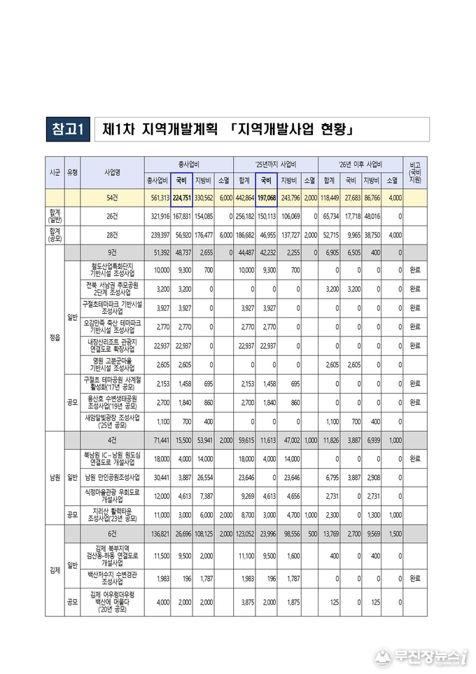 전북특별자치도는 지역의 성장잠재력을 개발하고 공공과 민간의 투자 촉진을 통한 지역경제 활성화를 위해 '18년부터 '27년까지 사업비 5,613억원을 투입하여 지역개발사업을 추진하고 있다고 밝혔다.