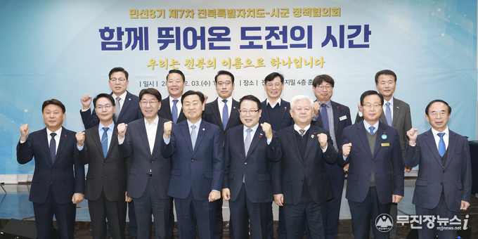 도는 3일 전주 왕의지밀 컨벤션에서 '함께 뛰어온 도전의 시간. 우리는 전북의 이름으로 하나입니다'라는 슬로건 아래 민선 8기 제7차 도-시군 정책협의회를 개최했다. 김관영 전북자치도지사와 정헌율 시장군수협의회장(익산시장)을 비롯한 시장·군수가 참석해 도정 핵심과제와 시군 우수 정책을 공유했다.