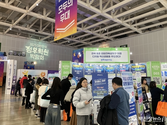 전북특별자치도는 3일, 충청북도 청주 오스코에서 5일까지 열리는 ‘2025 정부혁신 박람회’에 참가해 “전국 최초, 핀테크육성지구 지정으로 디지털 혁신 금융을 주도한다”는 주제로 전북의 혁신 성과를 선보였다고 밝혔다.