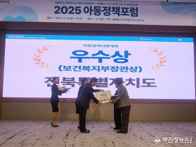 전북자치도 여성가족과 김정 과장은 “4년 연속 우수기관 선정은 도민과 현장의 다양한 의견을 바탕으로 아동의 권리와 안전을 최우선에 두고 노력해 온 결과”라며 “앞으로도 아동이 행복하고 안전한 전북을 만들기 위해 정책 실행력을 더욱 강화하겠다”고 말했다.