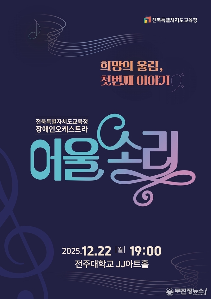 전북특별자치도교육청 장애인오케스트라 ‘어울소리’가 오는 22일 오후 7시 전주대학교 JJ아트홀에서 첫 정기연주회를 개최한다.