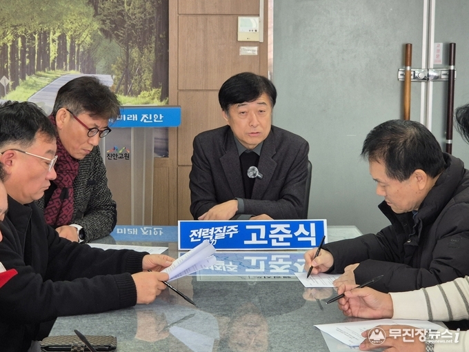 고준식 진안군수 출마예정자가 12월 18일 오전 11시 진안군청 브리핑룸에서 기자회견을 열고 진안군의 기본소득 탈락을 강력하게 비판하면서 “자립형 성장과 소득으로 위기를 극복하자”며 ‘진안대전환 3대전략’ 비전을 제안했다.