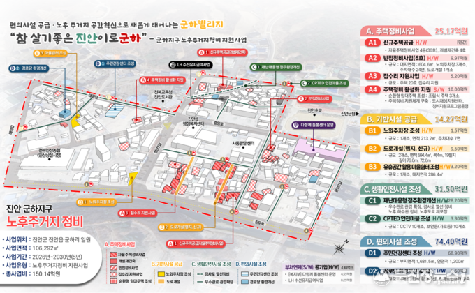 군하지구 노후주거지정비 지원사업은 진안읍 군하리 일원의 노후 저층주거 밀집지역으로“참 살기좋은 진안이로 군하”라는 사업 비전으로 주택정비사업, 기반시설공급, 생활안전시설 조성 등 2026년부터 2030년까지 5년간 추진하게 된다.
