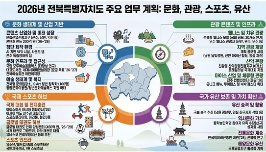 전북특별자치도가 2026년 문화·관광·체육 정책을 재정비한다. 창작 기반과 산업, 지역 경제로 이어지는 구조를 구축하고, 정책 간 경계를 낮춰 수요와 현장 중심으로 재편한다는 구상이다.