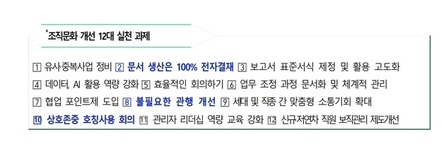 특히 우수사례 확산 플랫폼인 공유마당과 추진단을 유기적으로 연계함으로써 조직문화 개선 과제가 현장에 안착하고, 지속적으로 관리되는 실행 체계를 완성해 나간다는 계획이다.