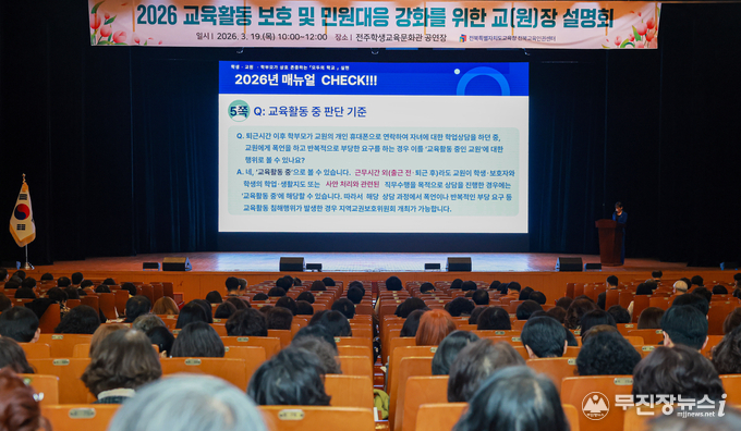 전북특별자치도교육청은 19일 전주학생교육문화관 공연장에서 2026년 교육활동 보호 및 민원대응 강화를 위한 학교(원)장 설명회를 개최했다.