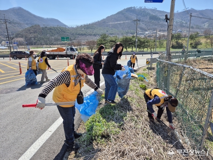 진안군 부귀면 행정복지센터(면장 원현주)는 지난 8일 오후, 부귀면 적십자회 회원 및 면 직원 등 15여 명이 모여 부귀면 주요 관문인 보룡재 일대에서 봄맞이 환경정화활동을 펼쳤다.