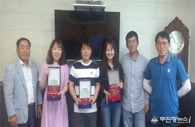 진안고원 운장산 고로쇠축제위원회(남귀현 위원장)가 고로쇠 농가의 소득 증대에 기여한 주천면사무소 정다연, 정성학, 이은선 주무관 3명에게 감사패를 전달했다.