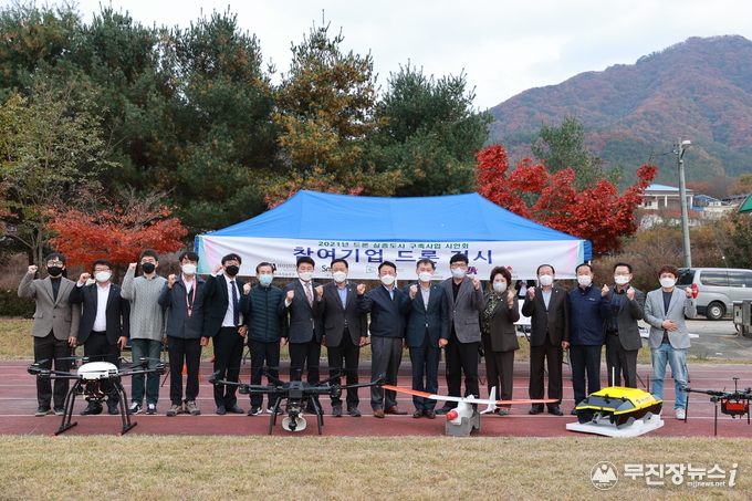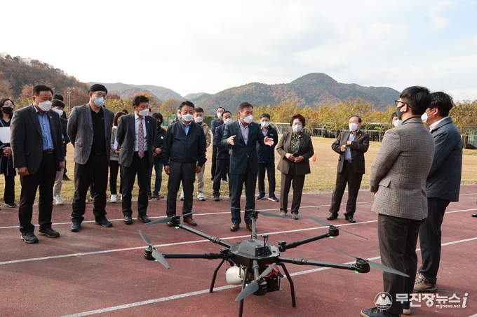 진안군은 지난 2일 오후 진안군 상전면 체련공원에서 드론 실증도시 구축사업 시연회를 가졌다.