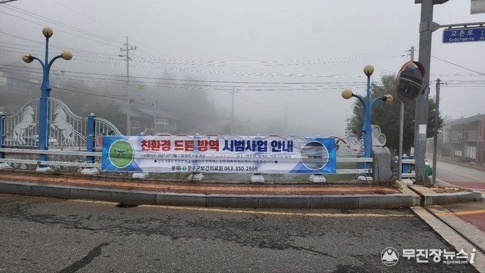 장수군은 1일 방역 사각지대 해소와 효율적인 해충 방제를 위해 드론을 활용한 방역 소독을 실시했다고 밝혔다.