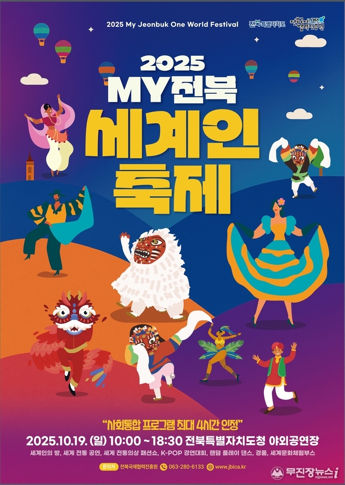 전북국제협력진흥원(원장 김기수, 이하진흥원)이 주관하는 「2025 MY전북 세계인 축제」가 오는 10월 19일(일) 오전 10시부터 오후 6시까지 전북특별자치도청 야외공연장 일대에서 개최된다.